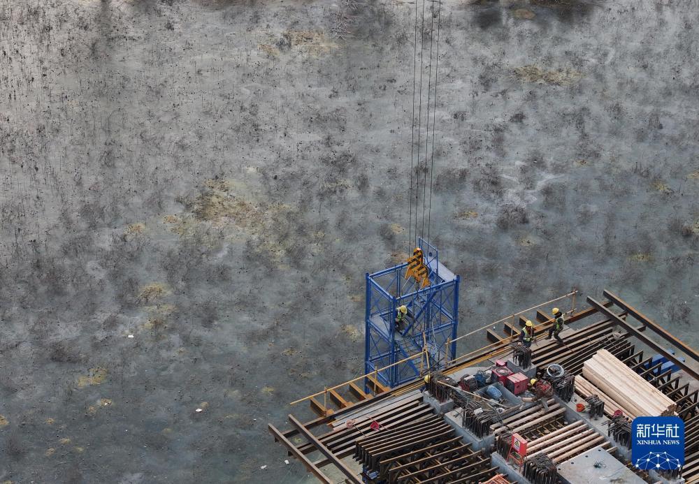 2024年1月25日,中铁二十局工人在位于陕西省西安市的西延高铁渭河特大桥施工现场工作。新华社记者 张博文 摄