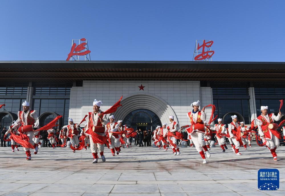 2025年12月26日,西延高铁首发列车从延安站驶出。新华社记者 张博文 摄