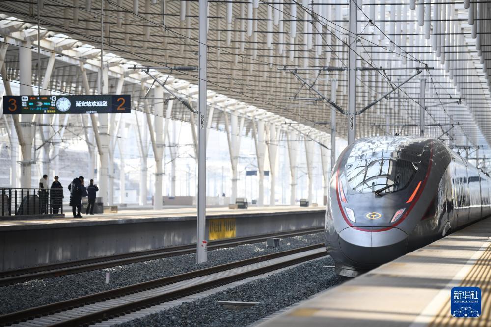 这是2025年12月26日在西安北站拍摄的西安开往延安的西延高铁C9312次首发列车。新华社记者 邵瑞 摄