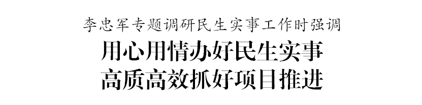 调研中,李忠军强调,民生实事是政府对群众的庄严承诺,要始终把保障和改善民生摆在突出位置,全力以赴完成今年既定任务,科学谋划明年民生实事项目,以实实在在的工作成效,让群众生活质量更高、幸福成色更足。