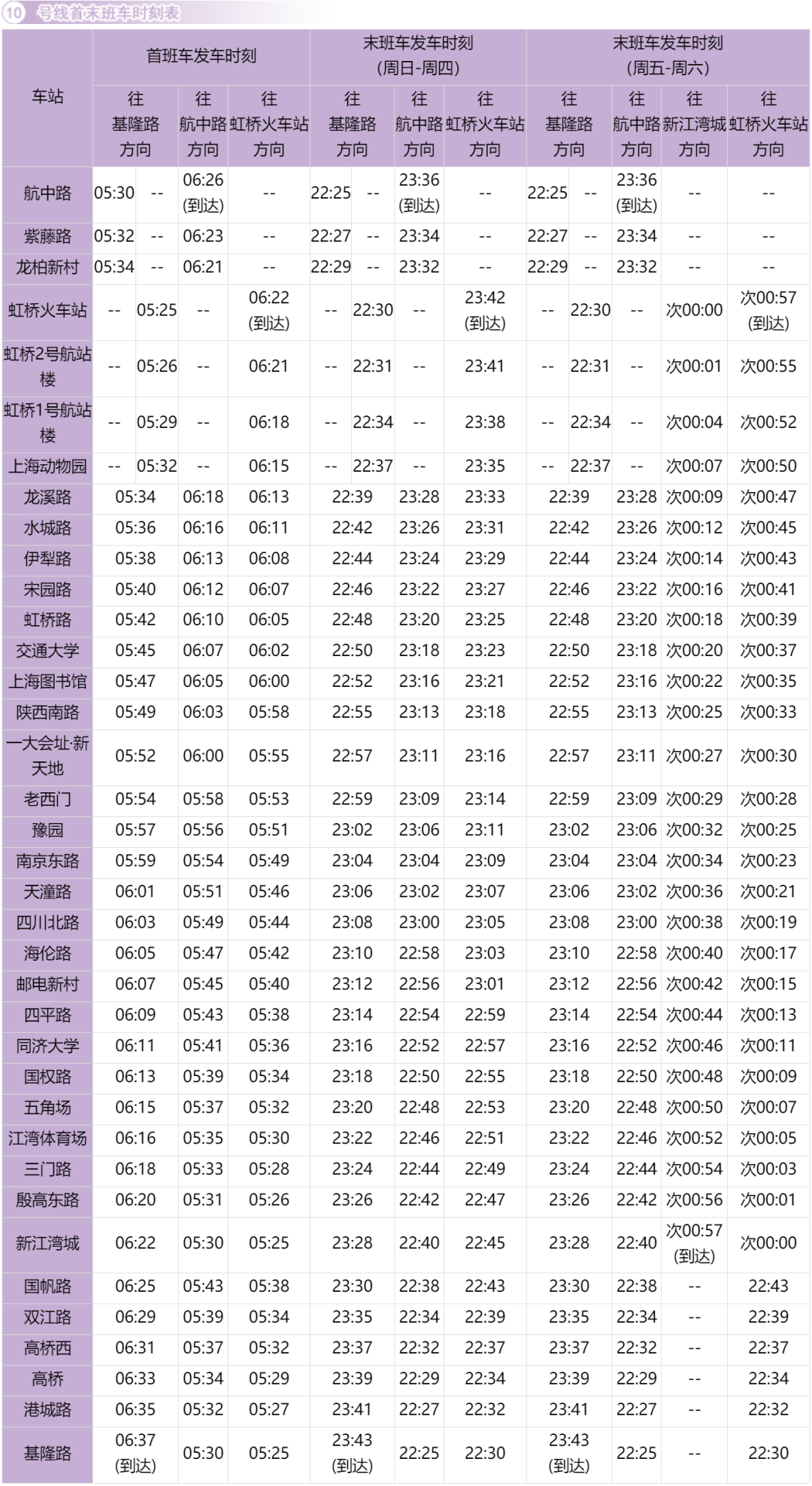 各位小伙伴请注意!随着今天(12月27日)首班车起,18号线二期工程开通初期运营,上海地铁全网首末班车时刻表也随之更新。请大家收藏~详见