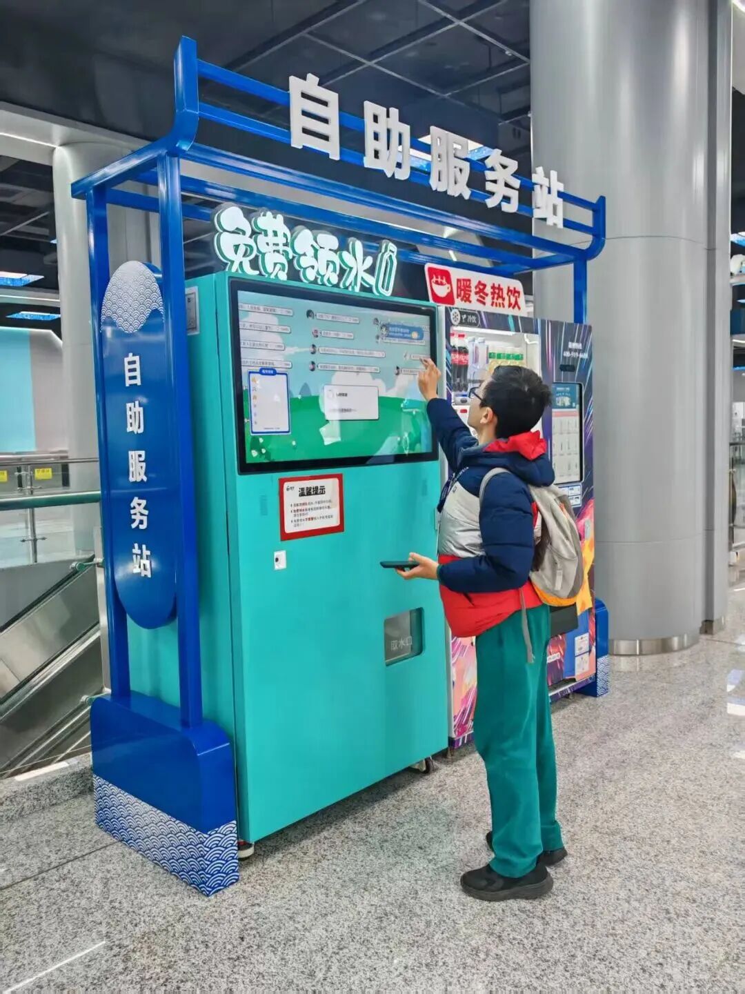 △全线设有咖啡店、自助便利店等6处特色便民服务,还有食品饮料机、共享充电宝等68台自助机具,以及寄存柜、鲜花柜、机器人鲜饮站等新业态服务点12处