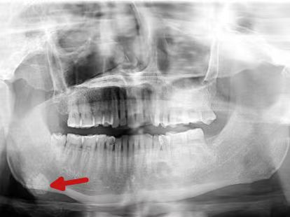 吞咽困难:结石堵塞,有时在下巴内侧(舌下)能摸到硬硬的小疙瘩。若结石堵塞引发腺体感染,还会导致口底反复肿胀、疼痛,甚至扩散到颌下区,引起吞咽困难、异物感。