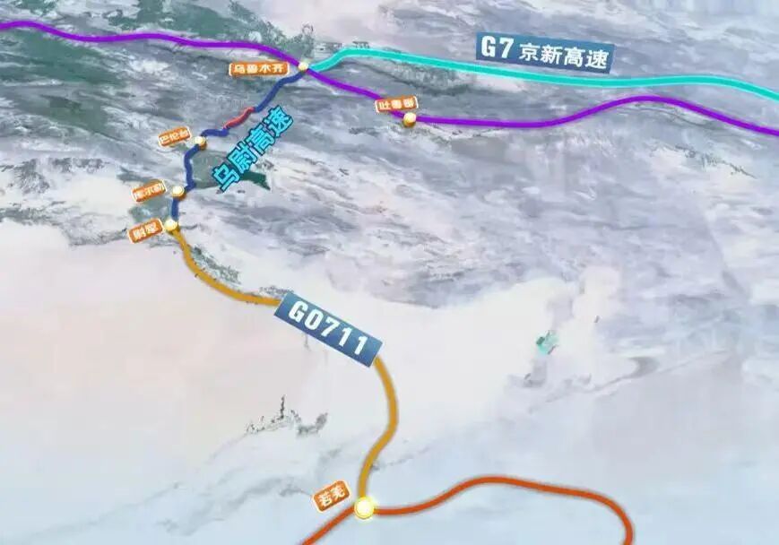 乌尉高速是国家高速公路网G0711乌鲁木齐至若羌高速公路的核心组成部分,连接新疆乌鲁木齐市和巴音郭楞蒙古自治州的尉犁县,全长324.7公里,于2020年4月开工建设,历经5年8个月建成。