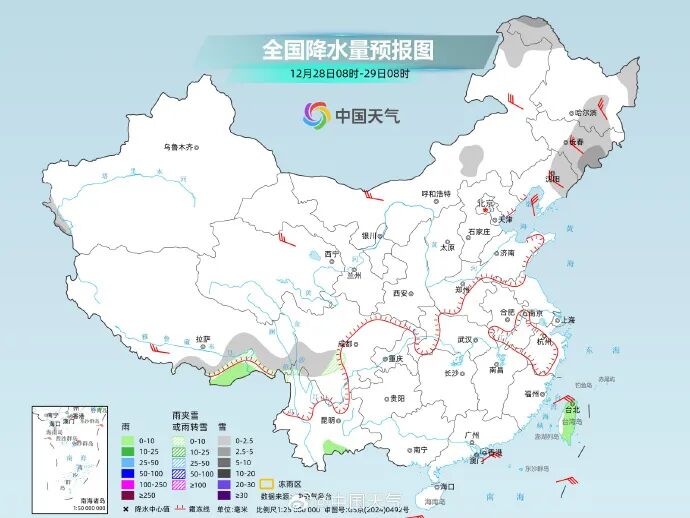 之后,水汽继续向东、向北输送,黄河以南地区将出现一轮“跨年”降水。目前来看这轮降水范围广,但强度不大,多是小到中雨雪量级。