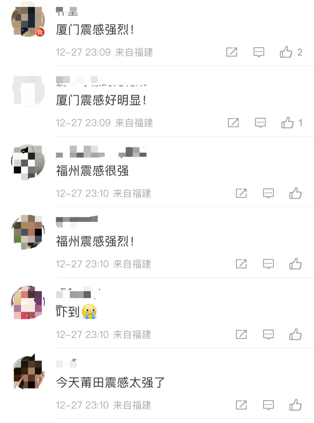 福建多地震感强烈