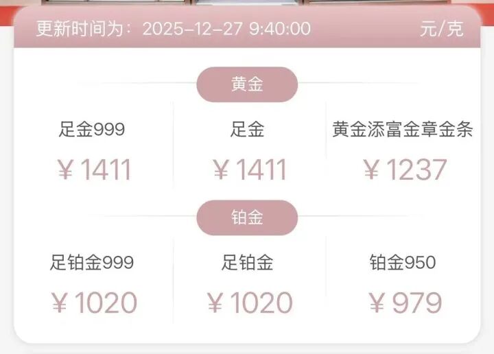 此外,铂金主力合约价格2昨天涨近10%,钯金涨幅接近12%。随着铂金的大幅上涨,国内品牌金店里铂金首饰的报价正式突破千元——六福珠宝足金铂今天的报价为1020元/克。