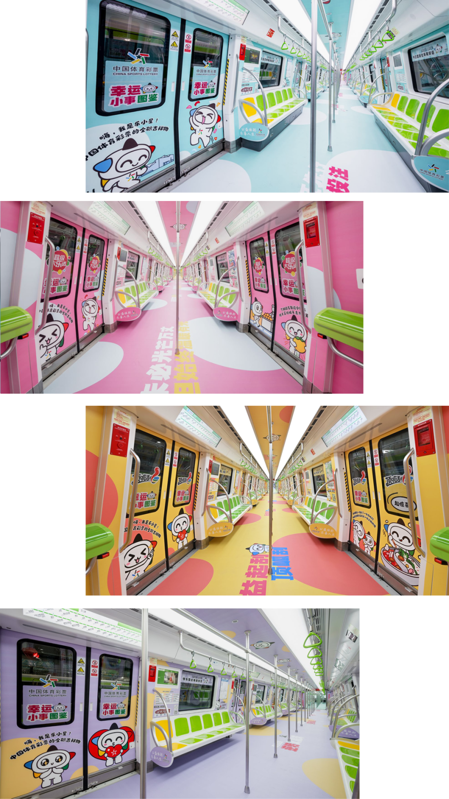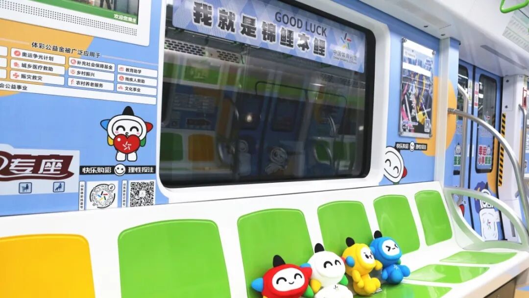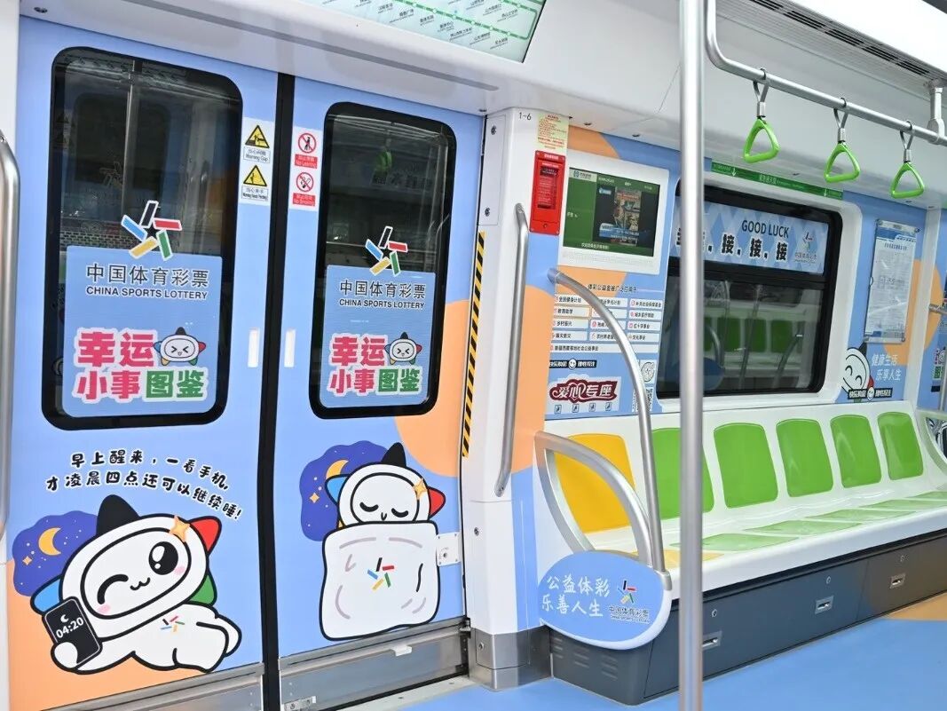 六节车厢自成天地,让每一段旅程都充满寻常又别样的欢喜。体彩品牌主题车厢内,体彩元素与“乐小星”的萌态交相辉映,“公益体彩 乐善人生”的理念随列车前行,悄然在乘客心中播下公益的种子。责任彩票主题车厢中,设计吸睛的海报与“快乐购彩 理性投注”的醒目标语,让体育彩票的责任担当深入人心。公益金主题车厢里,化身运动达人的“乐小星”在体彩公益金支持的场馆内活力运动,以漫画形式生动诠释体育彩票“来之于民 用之于民”的发行宗旨,让乘客在会心一笑间感受公益的温暖力量。