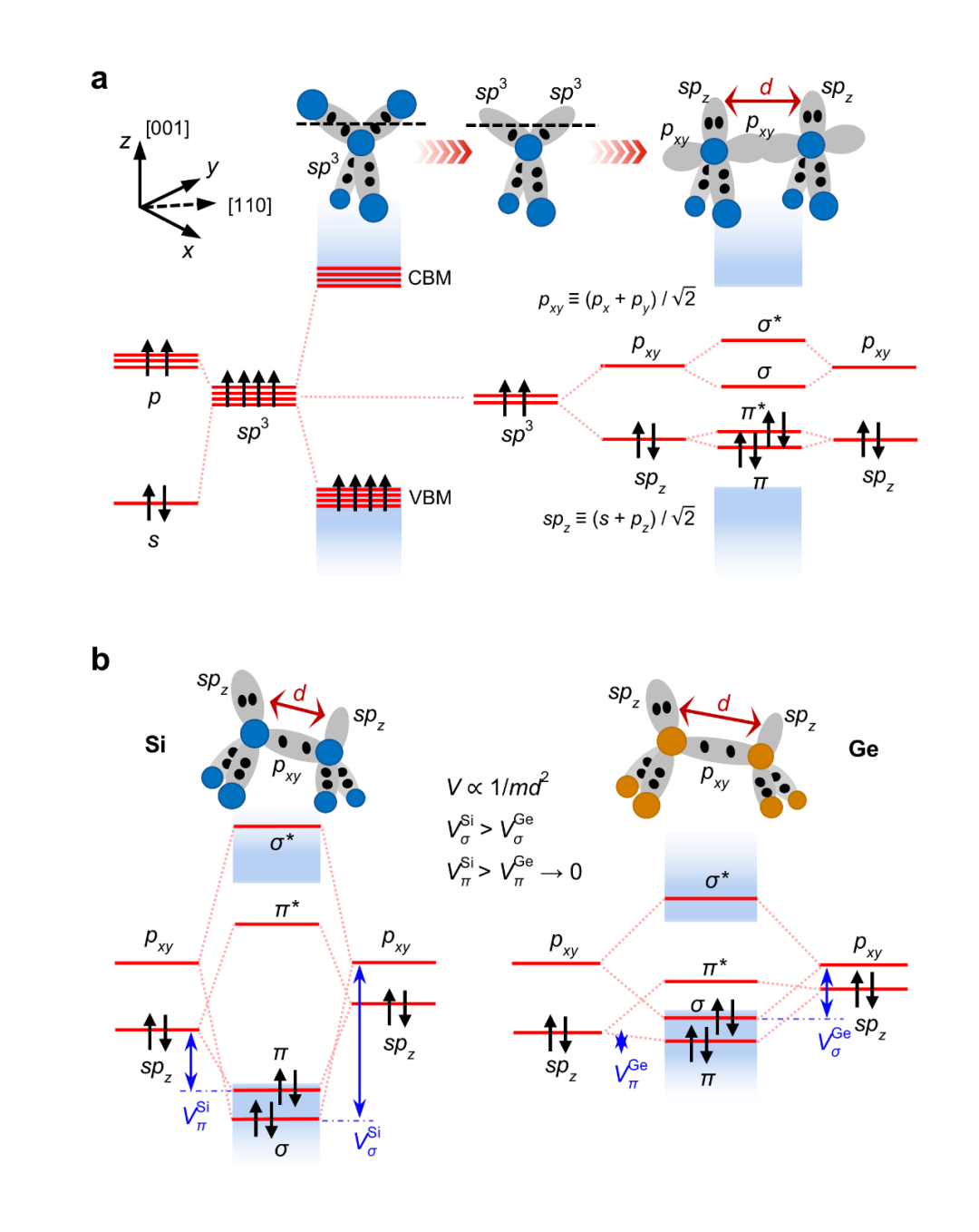 ▲硅和锗的表面悬挂键产生过程以及硅和锗自钝化的差异