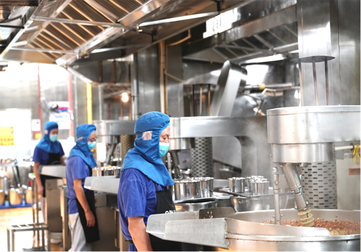 工人们正在制作“纯辣版”辣子兔。(受访者供图)