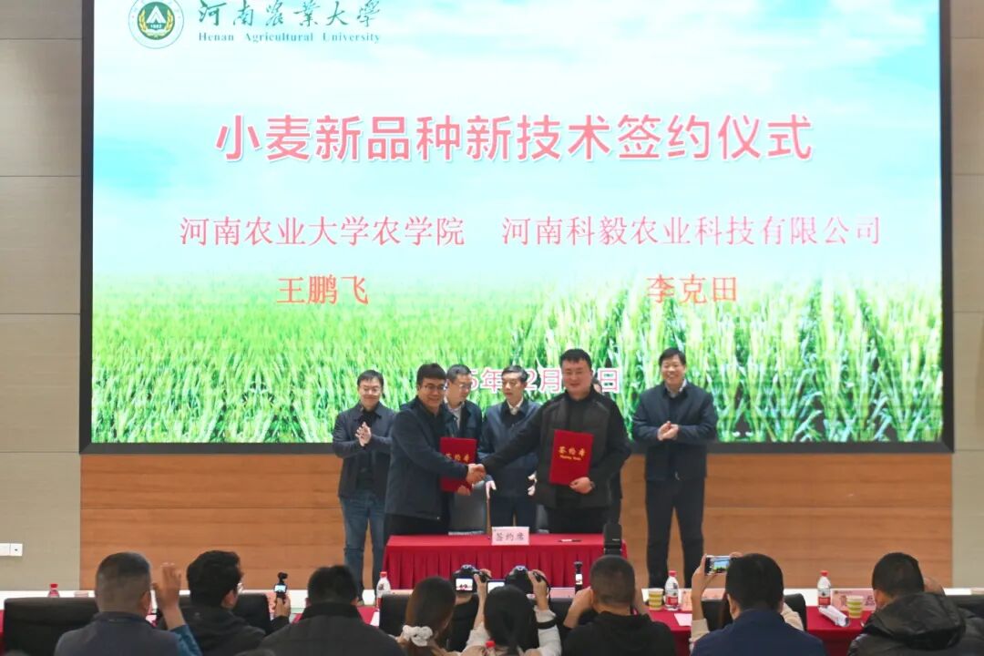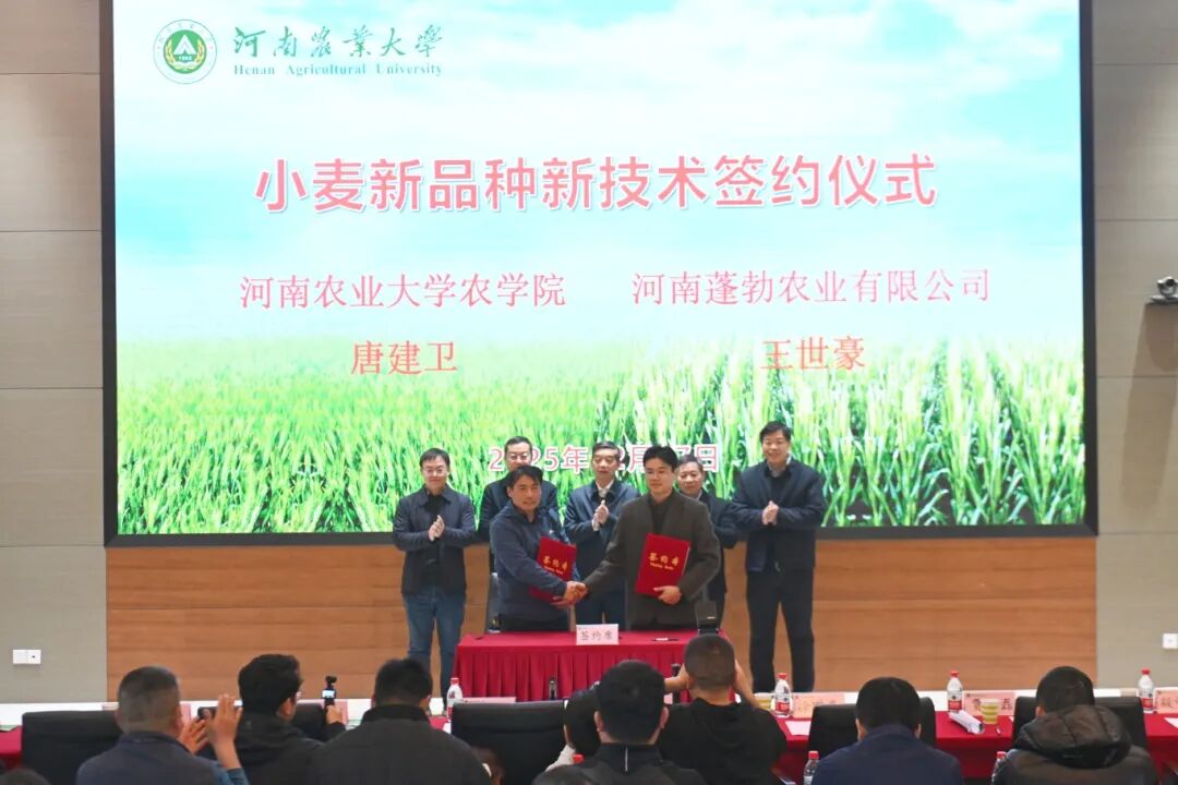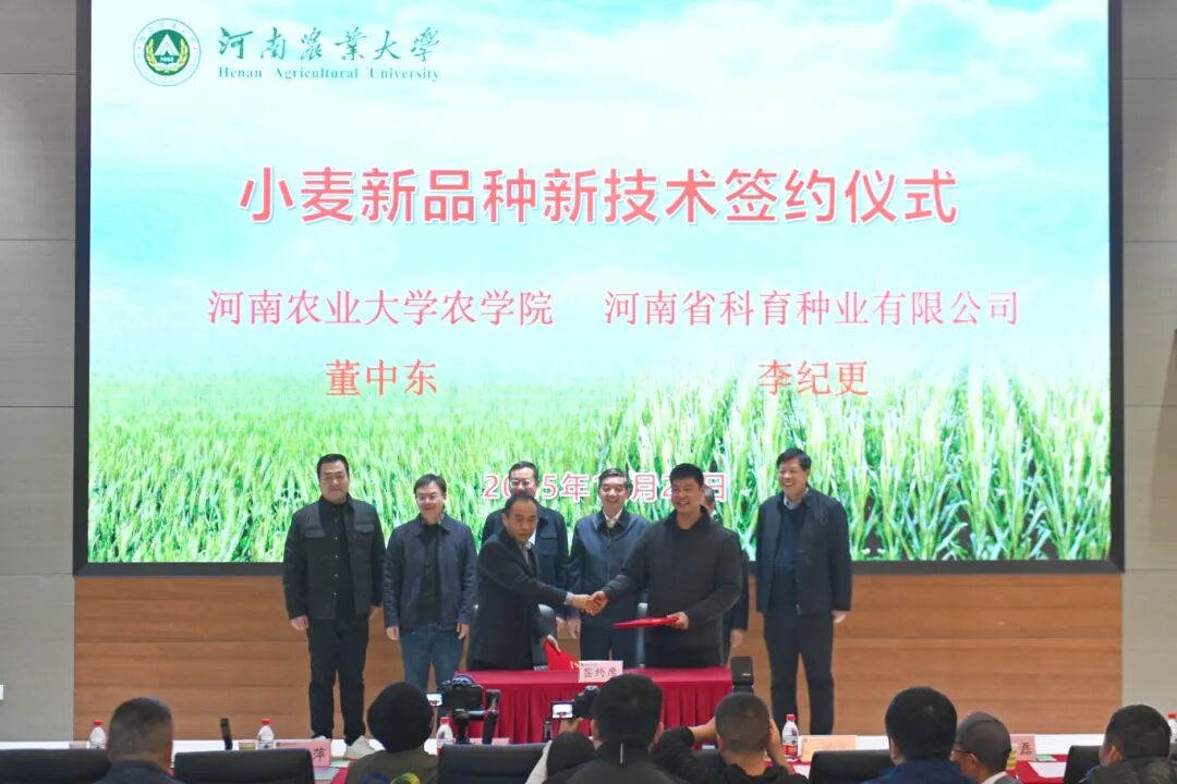签约仪式上,学校与江苏省大华种业集团有限公司、大北农集团河南金色丰华种业科技有限公司、河南赛德种业有限公司、新乡市农业科学院、河北润嘉种业有限公司等17家科研院所及种业企业集中签约,内容涵盖小麦、玉米、水稻等多个作物新品种与关键技术。此次签约也标志着校地、校企合作迈向新阶段。