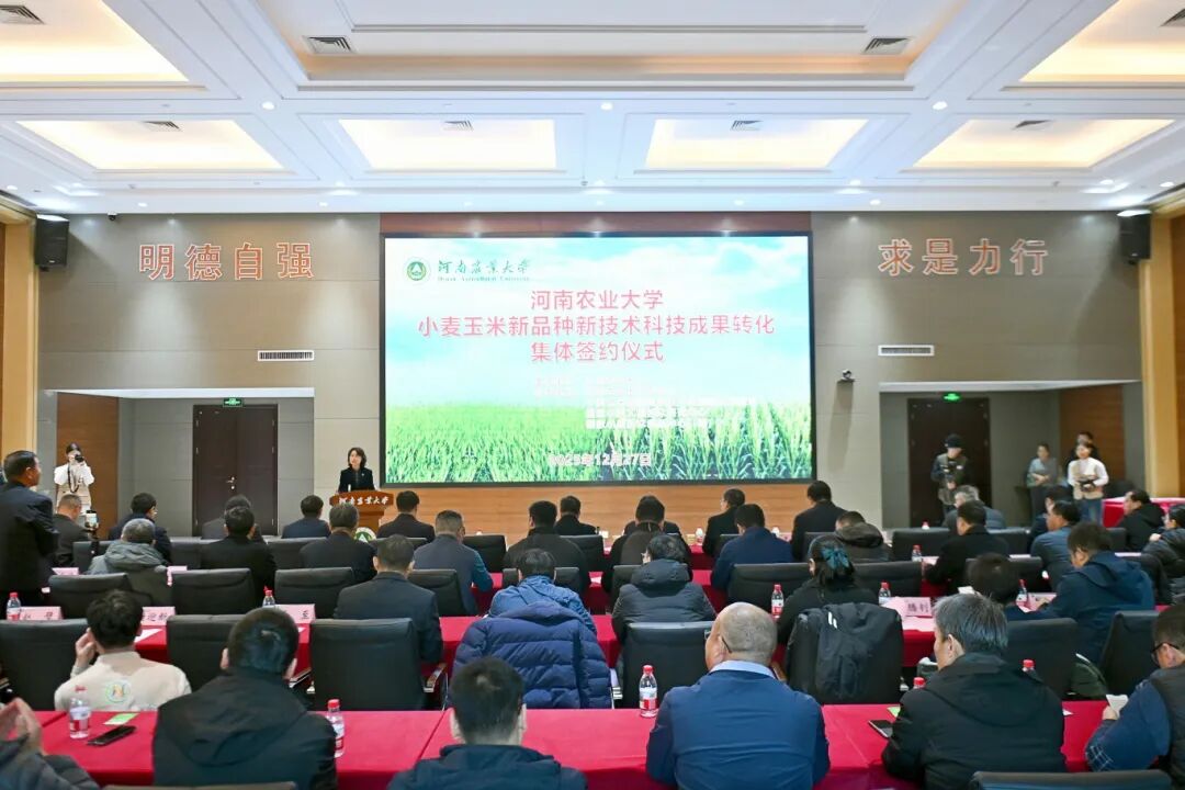 12月27日,河南农业大学农学院在河南农业大学龙子湖校区举办小麦玉米新品种新技术科研成果转化集体签约仪式,现场签约金额达3863万元。据悉,加上前期已完成的作物新品种转让,全年成果转化总金额累计7220万元,有力彰显了农学院在农业科技创新与成果转化方面的强劲实力。