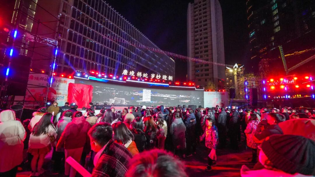 “跃马迎新·岁华焕彩”跨年盛典在唐道锅庄广场举办,火壶表演、“福禄寿喜财”巡游和跨年整点敲钟祈福等活动,让传统与现代元素交织,寓意吉祥迎新。