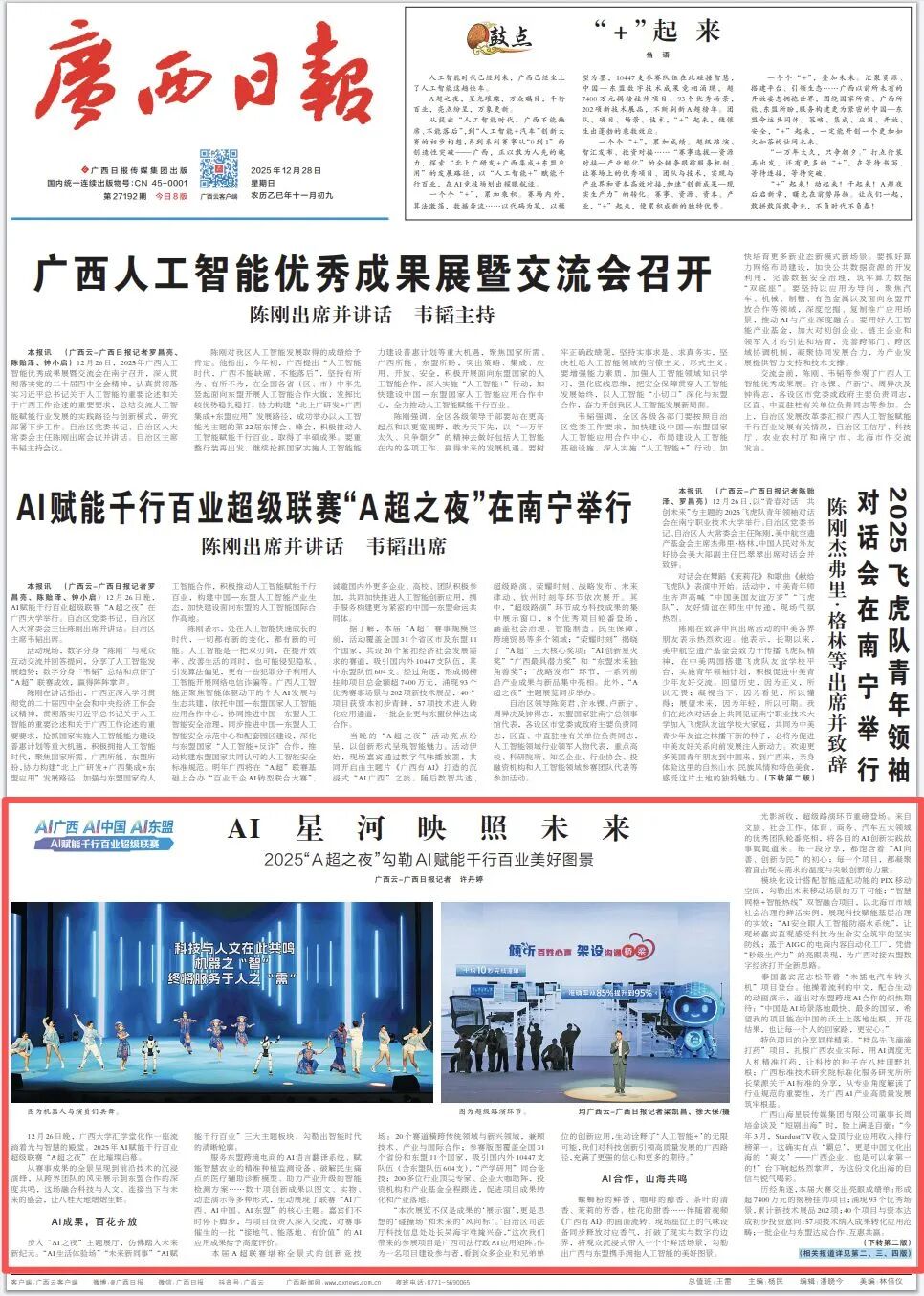 12月26日晚,广西大学汇学堂化作一座流淌着光与智慧的殿堂。2025年AI赋能千行百业超级联赛“A超之夜”在此璀璨启幕。