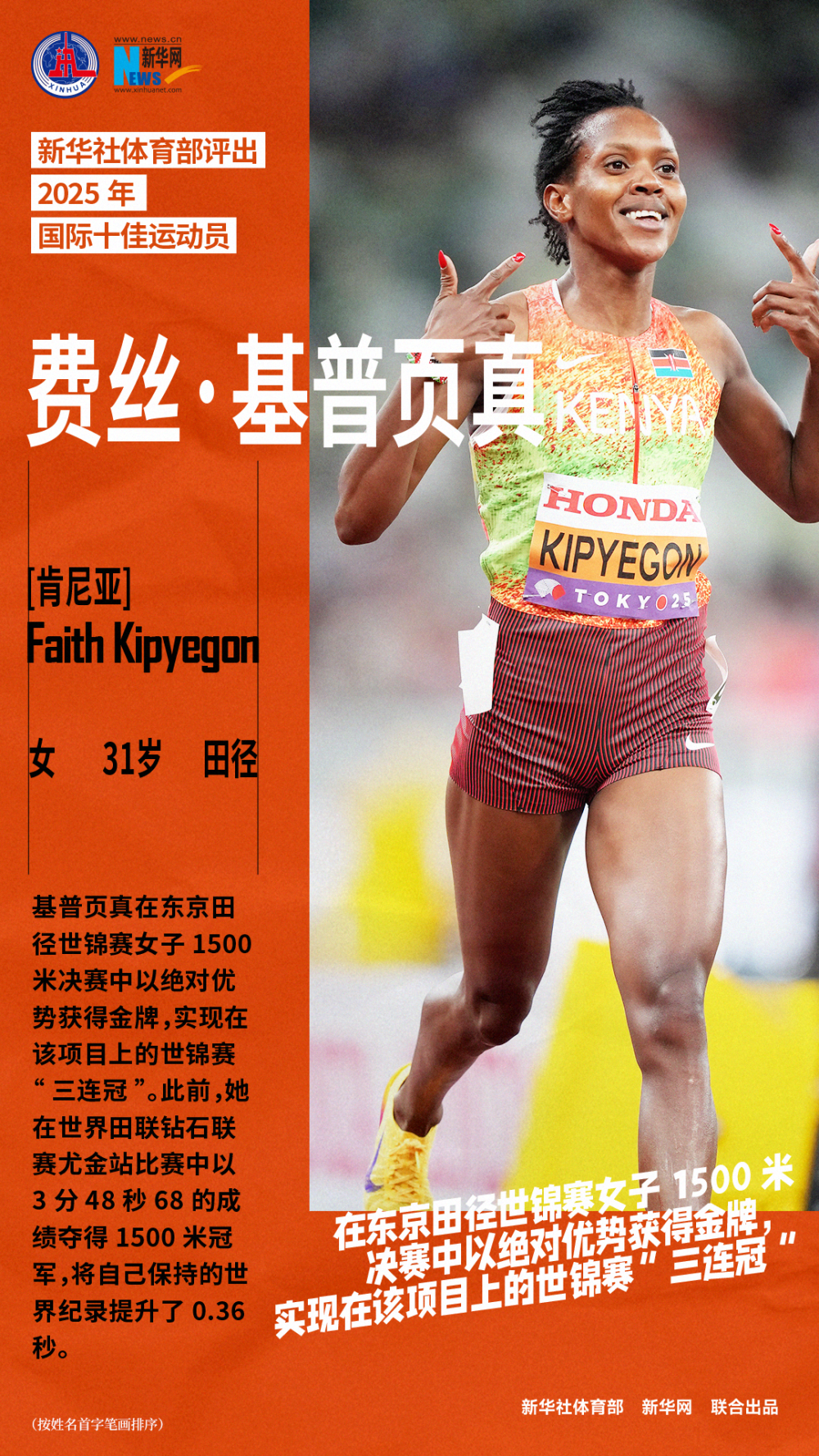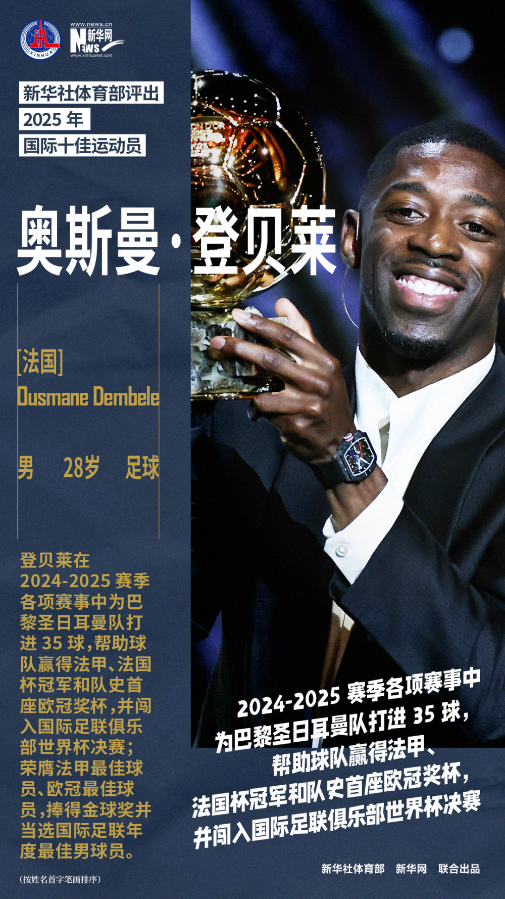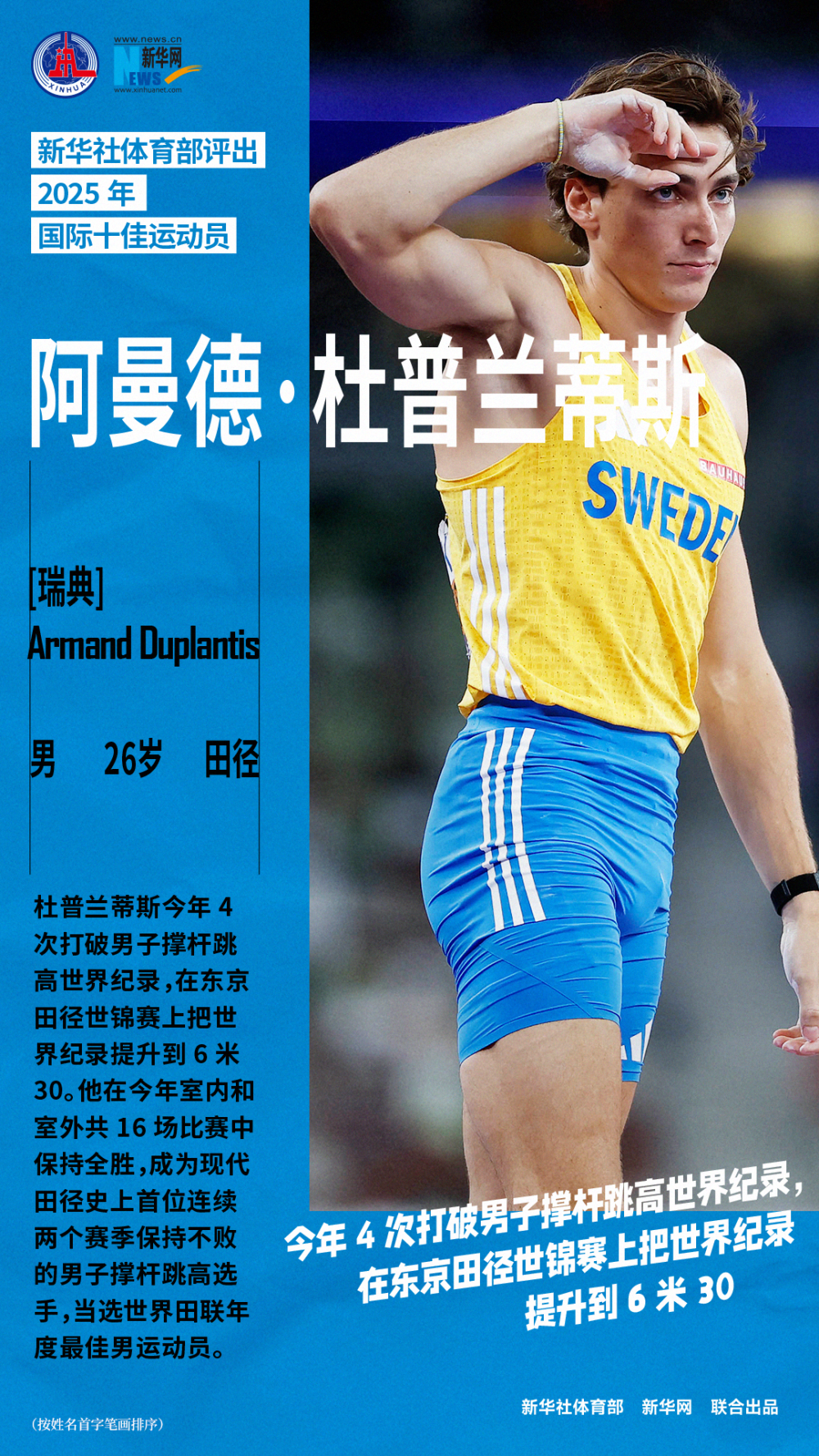 新华社体育部评出2025年国际十佳运动员如下(按姓名首字笔画排序):