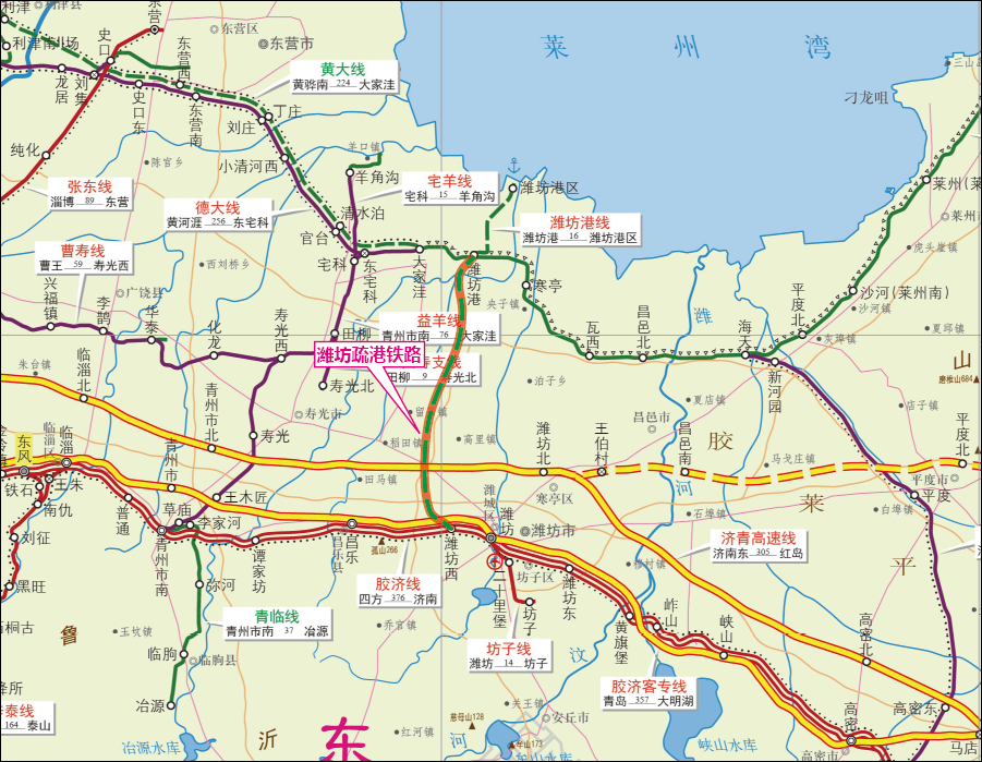 潍坊滨海至潍坊西疏港铁路走向示意图