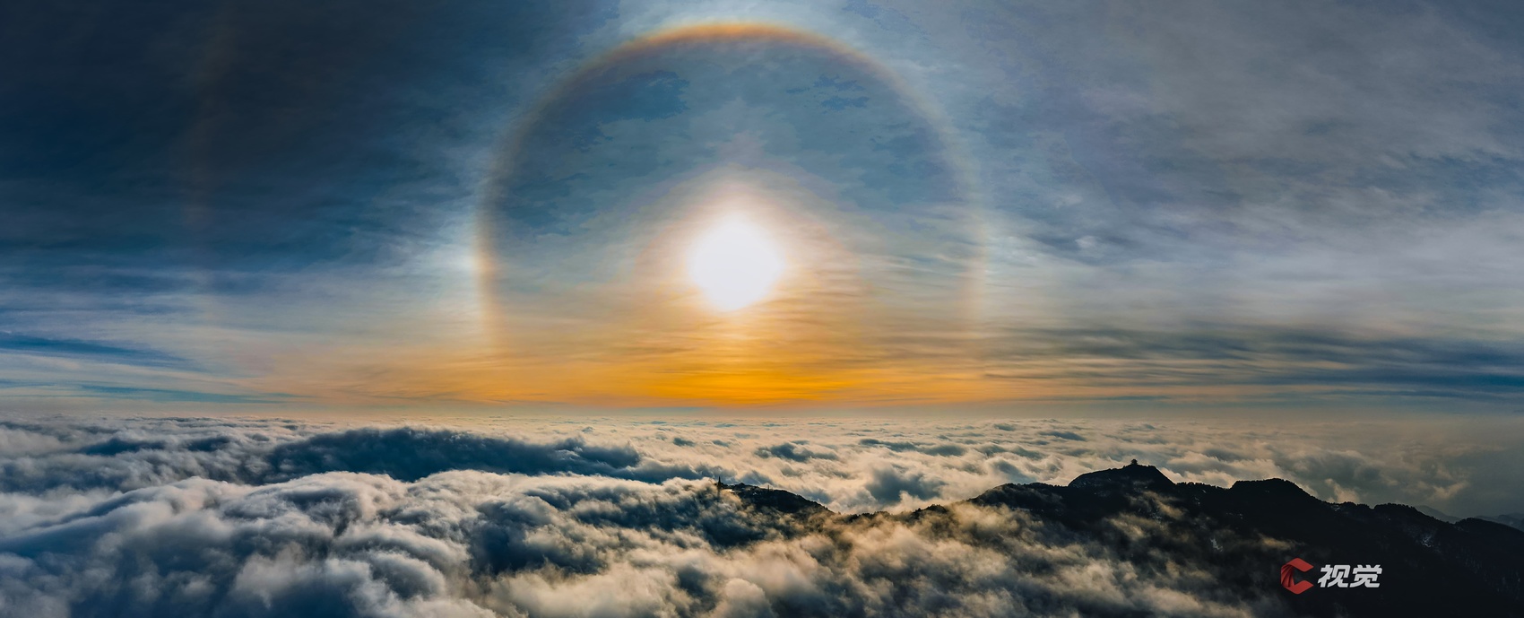 3月2日,峨眉山云海翻涌,朝阳初升,在天际线处形成了一道巨大的日晕。C视觉签约摄影师 锦书