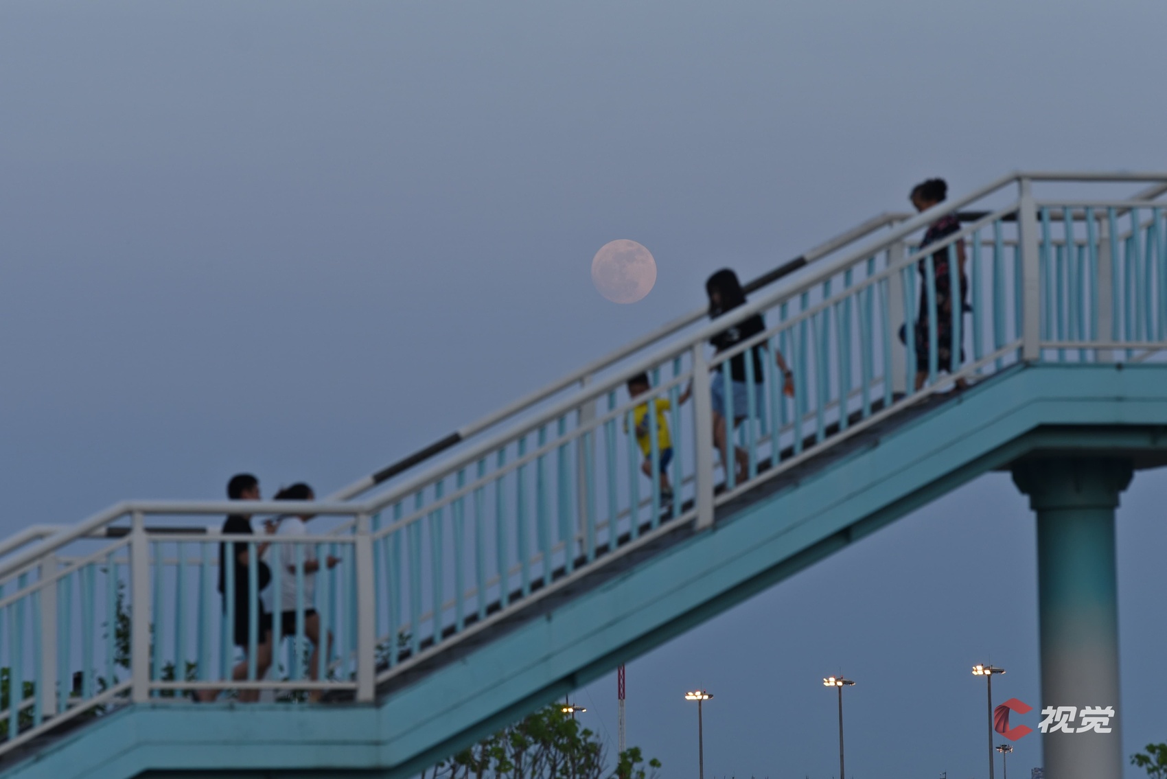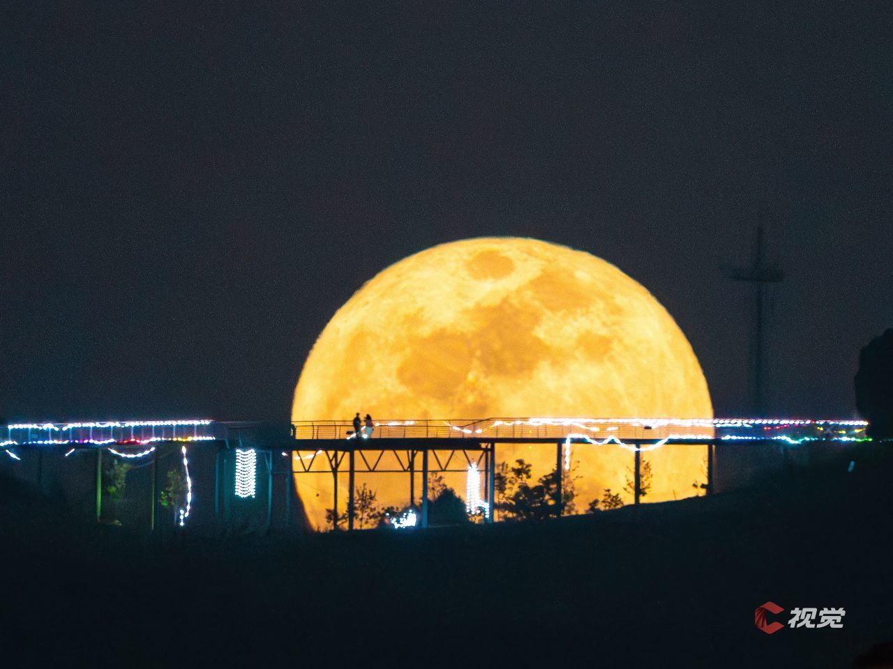 4月13日,年度“最小满月”从成都龙泉山上升起,一对情侣在桥上欣赏这一时刻。C视觉签约摄影师 张翔升