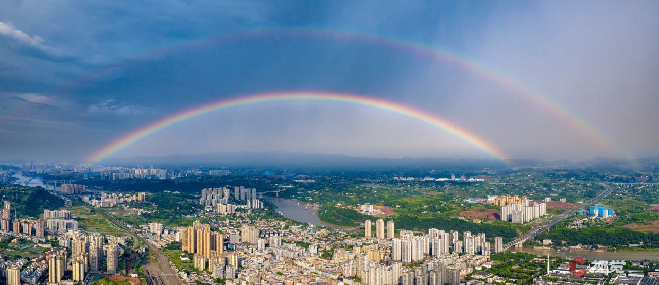 7月30日,宜宾市叙州区突降暴雨,风雨过后,在金沙江畔城市上空出现了一道美丽的双彩虹。C视觉签约摄影师 张元戎
