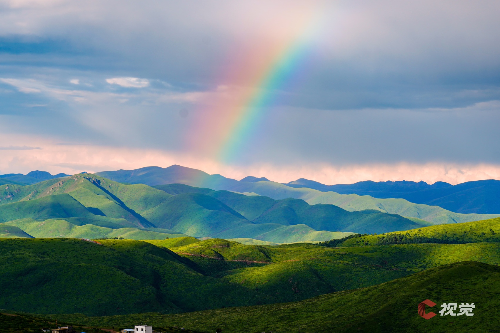 8月2日,阿坝县壤塘县尕卡岭,连绵群山之上,一道绚丽的彩虹横跨天际。C视觉签约摄影师 王叙融
