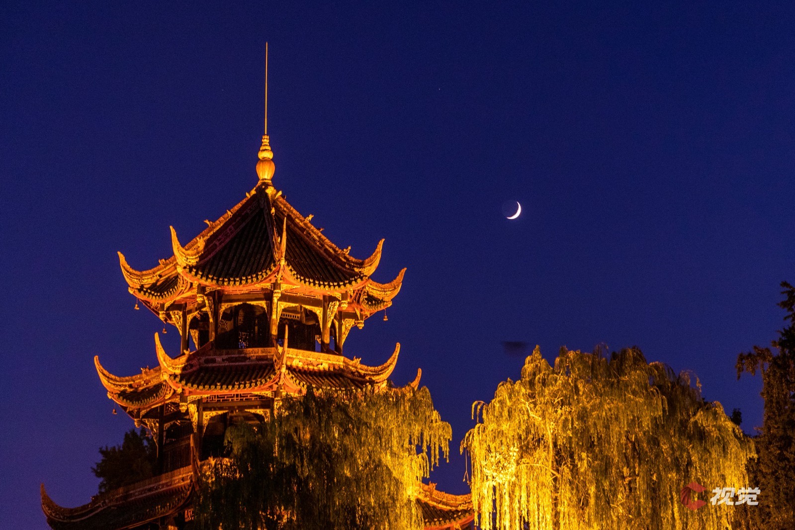 7月28日晚,成都望江楼与“火星伴月”同框。C视觉签约摄影师 李天祥