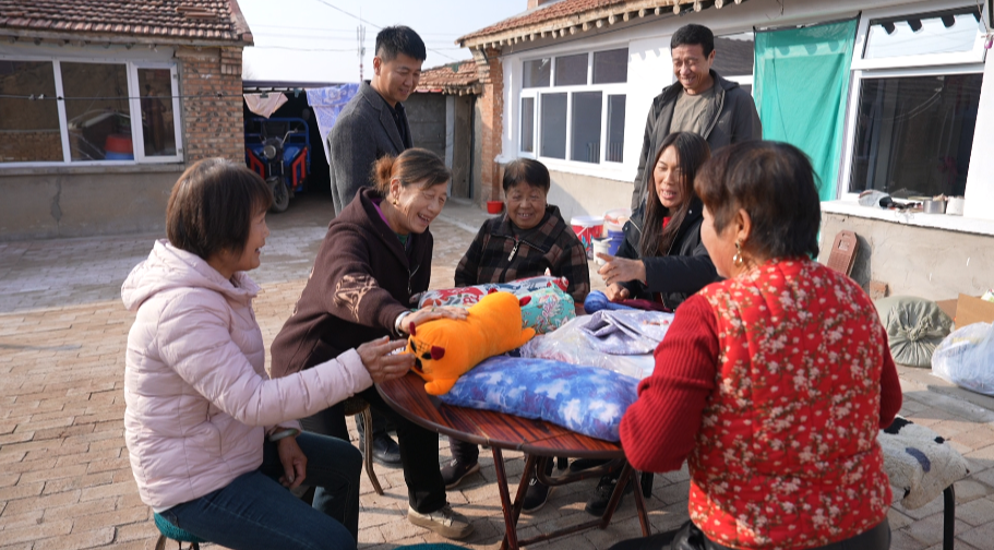 “像刚才大娘说的这种绣工,价格在30元、40元、50元不等。”收购商安艳鹏介绍道。村民满脸笑意:“今年冬天有的干了,也能挣钱了,坐在家里就能挣钱。”“就是,这你天天挣钱。”冯月珍也笑着说。