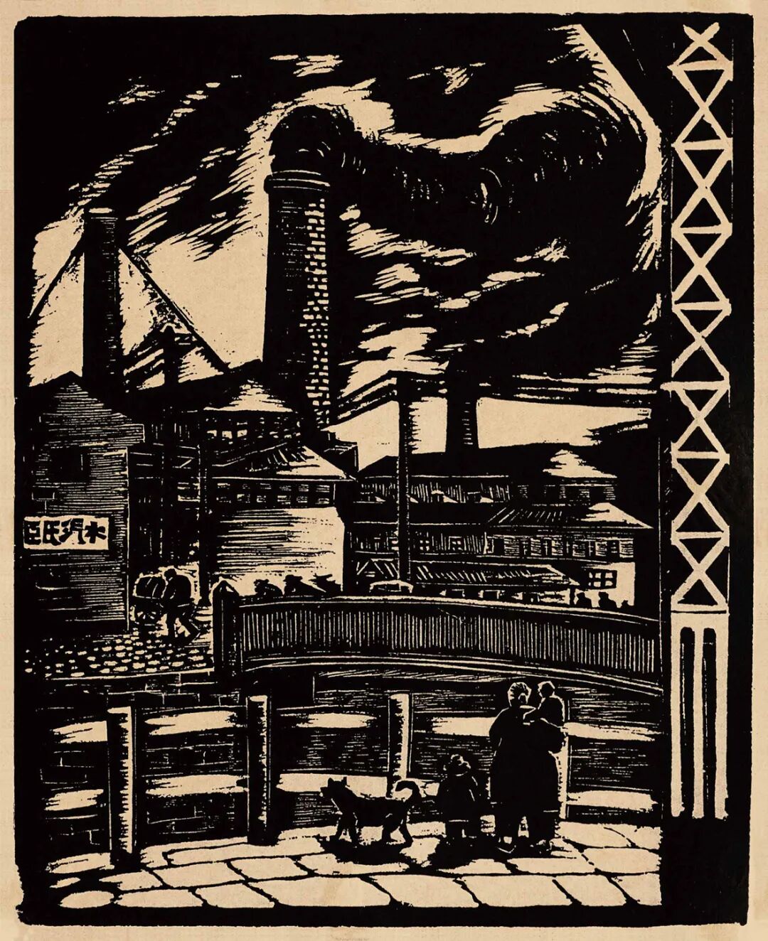 爸爸还在工厂里(版画) 25×20.4厘米 1933年 罗清桢 华茂艺术教育博物馆藏