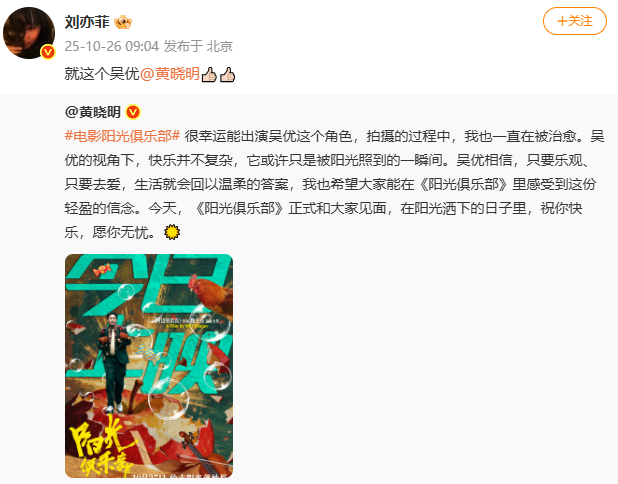 两人也因为拍摄《神雕侠侣》结下了一段友谊。今年10月,刘亦菲曾转发微博为黄晓明宣传新片。
