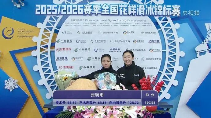 而在女单自由滑决赛中,拿到197.58分的张瑞阳以两场选拔赛总分377.12的成绩获得米兰冬奥会名额!