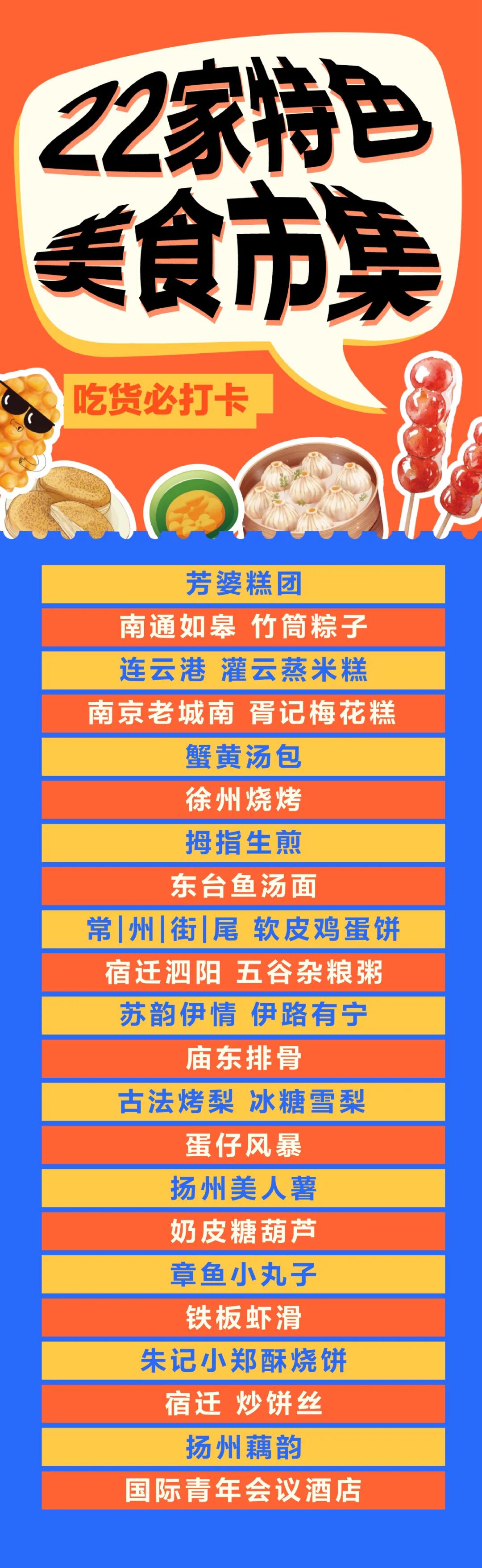 吃货必冲的美食市集,全省20家特邀美食摊位,集结南京、南通、连云港、徐州、常州、宿迁、盐城、扬州……还有伊犁的特产美食,口碑与网红属性双在线,满足味蕾的同时,轻松拍出氛围感打卡大片。