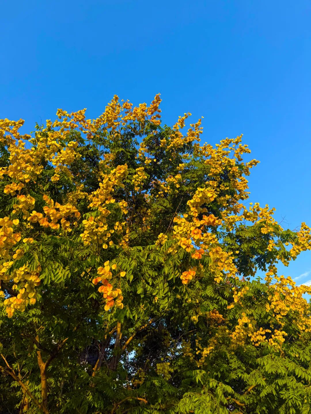 步行长岗路,两旁清一色的栾树让人惊奇与诧异。虽说是,天气已经步入冬时,可那树梢枝头上分明绿叶葱葱,“兴致正浓”。红的花绿的叶黑色树干……挺拔耸立,多像是与寒冷抗衡,宣示着她的桀骜与倔强。
