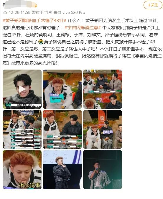 今日,# 黄子韬因脑淤血手术缝了43针 #话题强势登上微博热搜,引发全网热议。