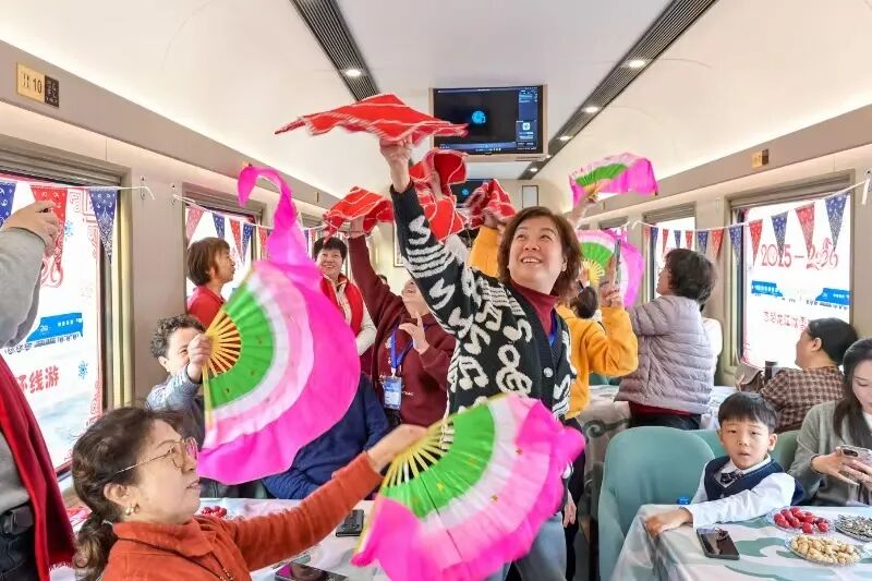 冰雪环线旅游专列将持续开行至2026年2月,满足银发游客“乘火车、赏冰雪、享岁月”的出行需求。