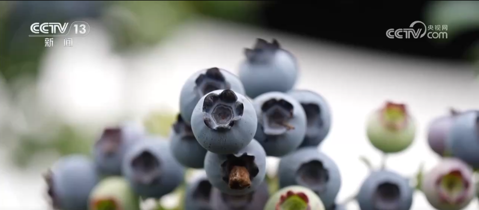 在当地一个基质蓝莓种植基地,一排排标准化暖棚内暖意融融。翠绿的枝叶间,一串串饱满圆润的蓝莓裹着白霜,长势喜人。种植户们分工协作,采摘、分拣、装箱、冷链打包一气呵成,新鲜蓝莓就通过冷链物流发往全国各大城市。