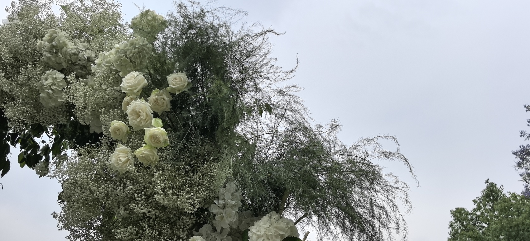 用干花、芦笋秸秆等材料制作的花艺作品。