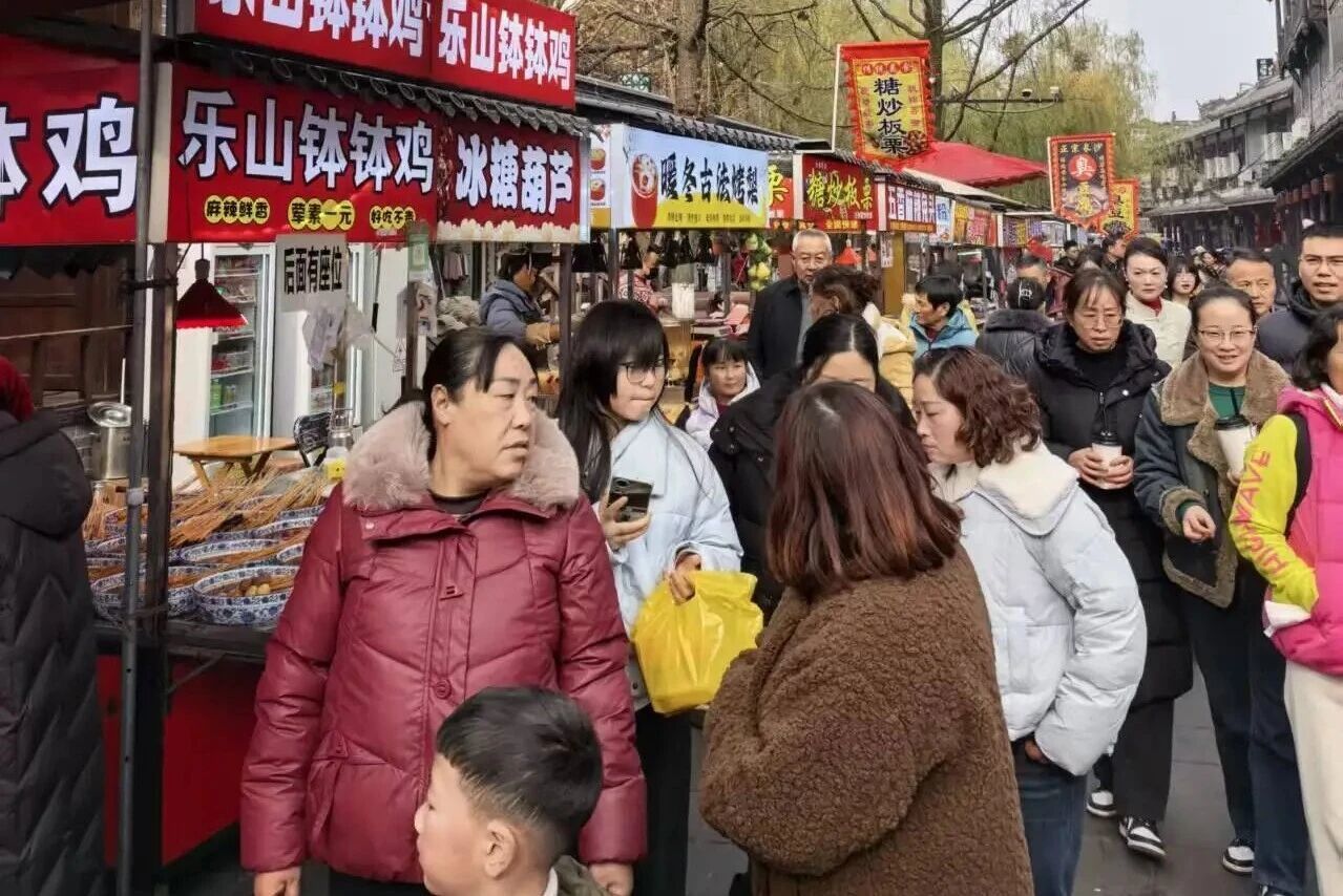本次天府珍馐展区双点布局更贴心:玉垒山广场集结本土匠心食品企业,各类预包装好物一站式配齐,拎走送礼两相宜,让跨年的舌尖与行囊,皆满载堰上鲜香;灌县古城杨柳河街则是特色小吃扎堆,烟火氤氲满街巷,琳琅风味让人目不暇接、馋涎欲滴。