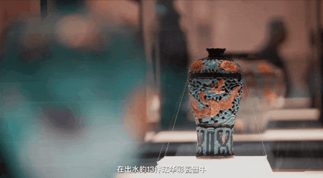 在展厅展示的13件“珐华彩”瓷器中,一件“贴金应龙纹梅瓶”更是匠人创造力的巅峰见证——瓶肩缠枝纹蜿蜒舒展,瓶身一条应龙遨游于九天云海之间……这种集沥粉、贴金、镂空等工艺于一体的珐华器,在世界范围内也是首次发现。