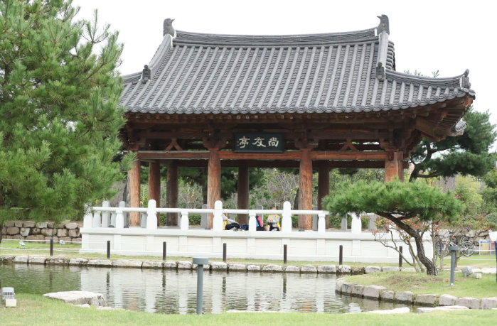 10月17日,市民在韩国庆州的“韩中友好林”公园里的尚友亭休息。新华社记者 姚琪琳 摄