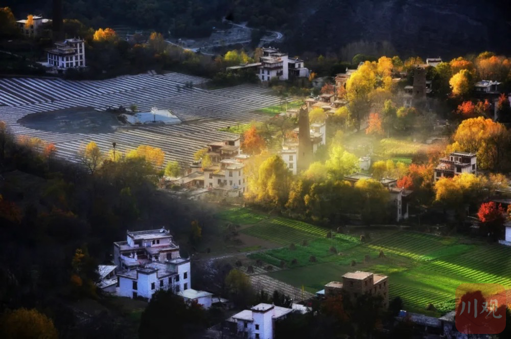 丹巴的冬季并非萧瑟。在被誉为“千碉之国”的梭坡,冬日晨曦早早光临,为屹立千年的古碉楼群披上金色。晨光中,这些嘉绒先民的建筑杰作投下悠长影子,静默诉说着历史,等待人们从容触摸石墙上的岁月痕迹。而在声名远扬的甲居藏寨,当日光渐斜,座座白藏房反射着柔和的金色余晖,袅袅炊烟在光柱中升起,构成一幅静谧的诗意生活图景。