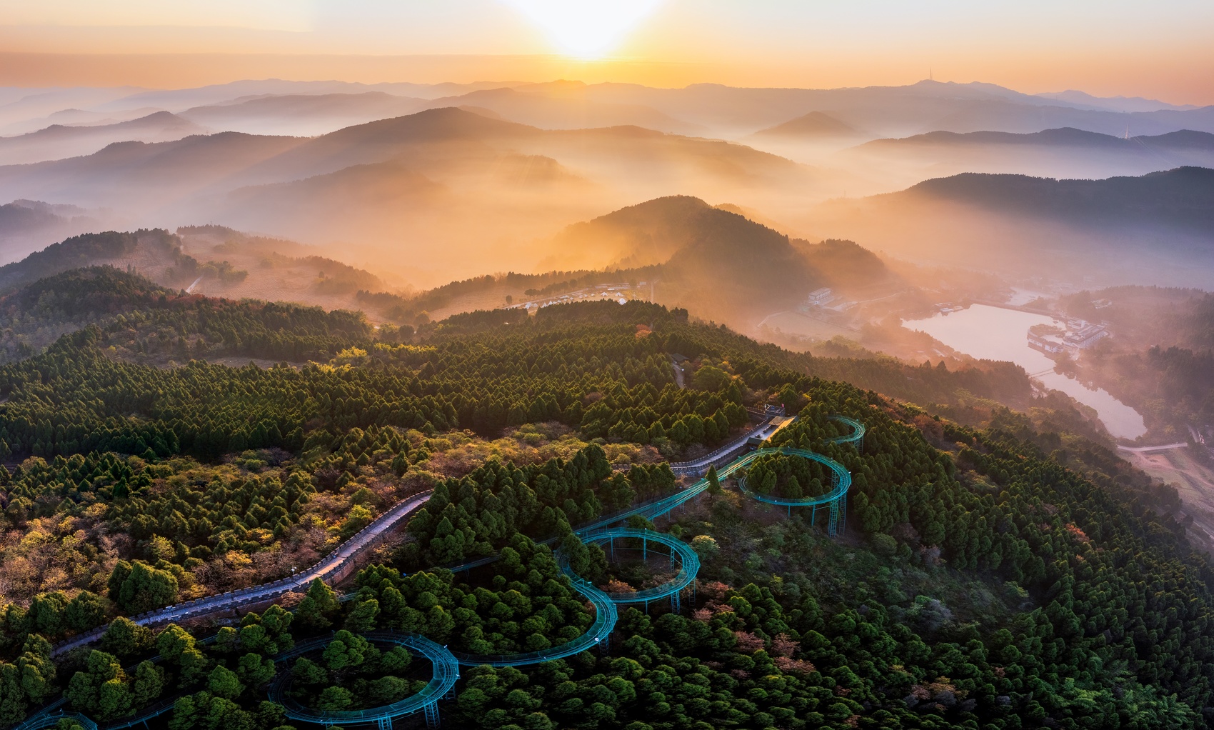 两山夹一城,山顶上的精彩,有山下热烈的呼应,相得益彰。