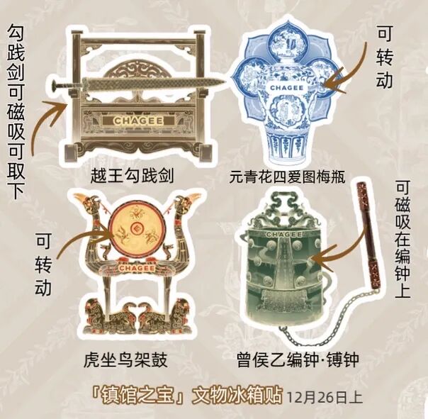 12月26日,霸王茶姬携手湖北省博物馆推出“茶香楚韵 器象万千”湖北限定联名活动,推出文物冰箱贴、毛绒包、披肩毯、手机壳等,将省博瑰宝融入日常,在一杯东方茶里,品出传统与当下的悠长回响。