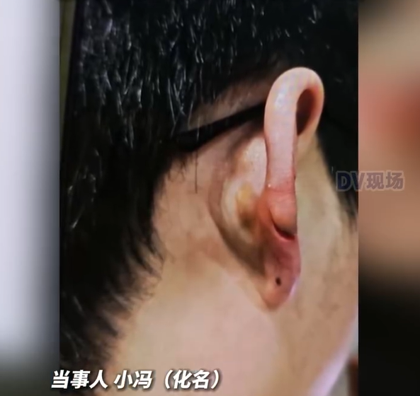 据广东广播电视台民生频道《DV现场》报道,广东江门市民小冯说自己前几天去一家理发店剪头发时,右耳不慎被理发师剪伤,当场流血,“流了很多血,痛得我说不出话来。”当时,理发师跟他说了对不起后简单处理了一下伤口。