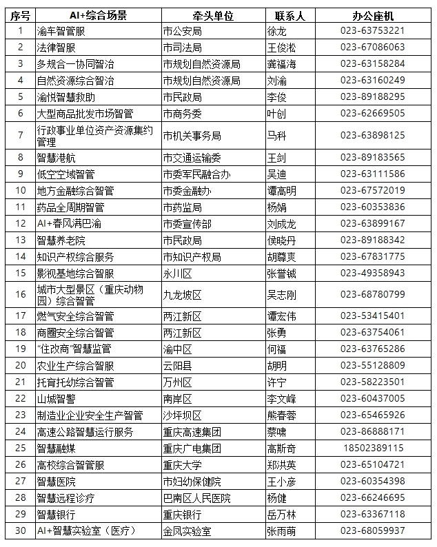 数字重庆建设领导小组办公室要求,各场景牵头单位以AI+综合场景建设为载体,面向全国招引一批建设经验丰富、技术实力强大的开发团队,参与数字重庆重大应用场景开发集成、高质量数据集和可信数据空间等建设,在引进培养一批数字产业企业、技术支撑数字重庆建设同时,推动AI+综合场景早日上线实战,为企业群众生产生活提供更高效便捷智慧的数字化服务。