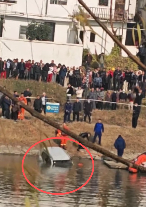 网友提供的视频显示:小车冲入河中后,整个车头淹没在水中。事故发生,当地救援人员迅速赶到现场进行救援,经过几个小时的努力,才将车辆和车内人员救起。