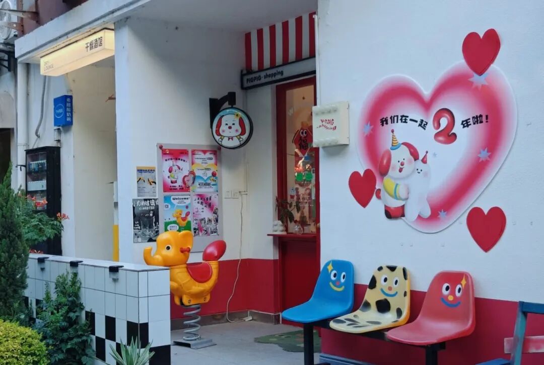 正东路上的店铺则通过色彩分区策略形成多元的视觉体验。红色系的“妈妈吴”水果店采用朱红色门头,搭配木质牌匾创造温暖亲切的消费氛围;“工业风”的玩痞社咖啡馆保留原始灰色水泥墙面,呈现出一种粗犷质感;蓝色系的“好好拍”拍照馆则运用“克莱因蓝”色调打造极致简约风,成为摄影爱好者的聚集地。这些店铺各具特色又相互映衬,形成了一条色彩韵律明快的商业动线。
