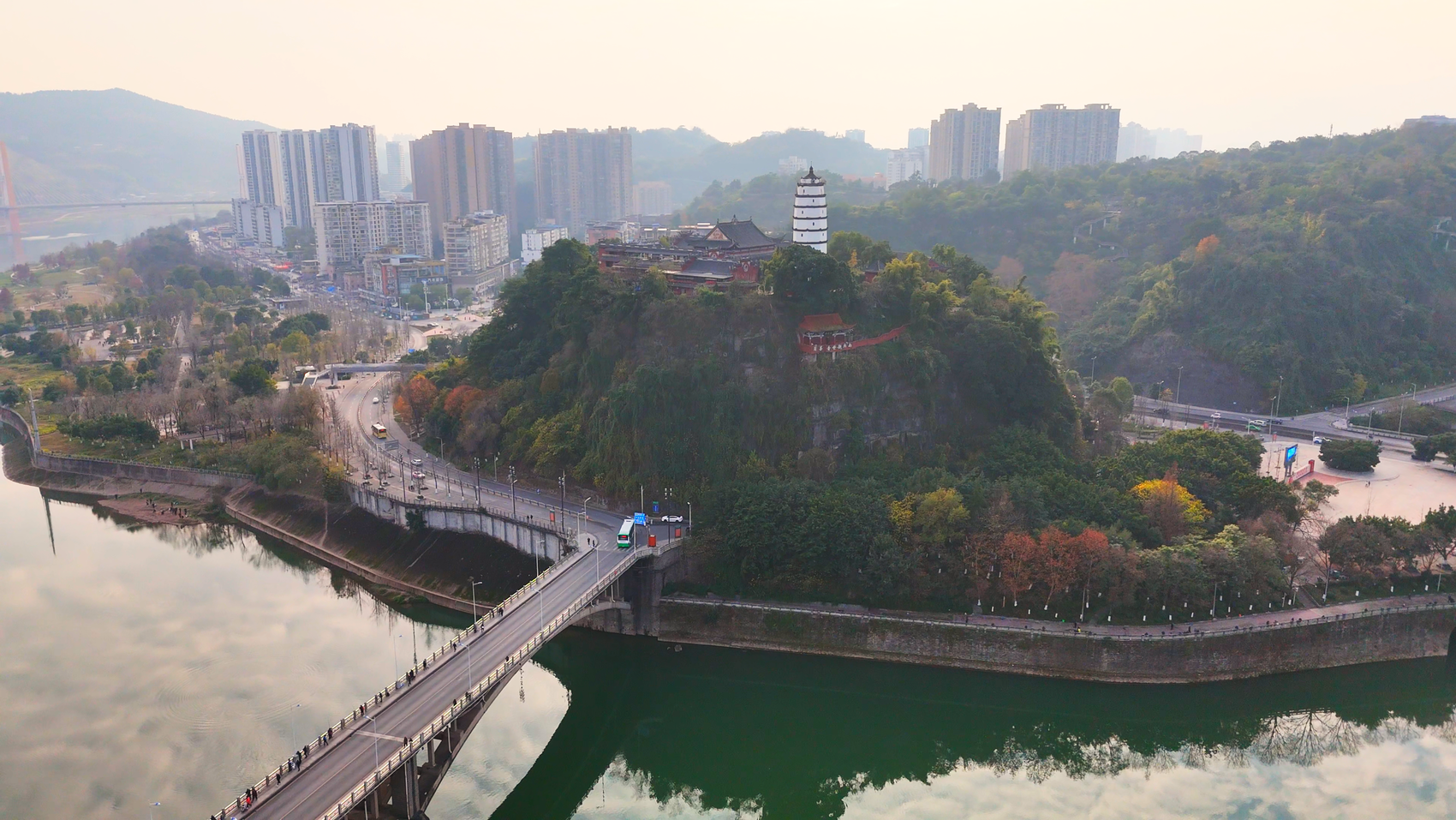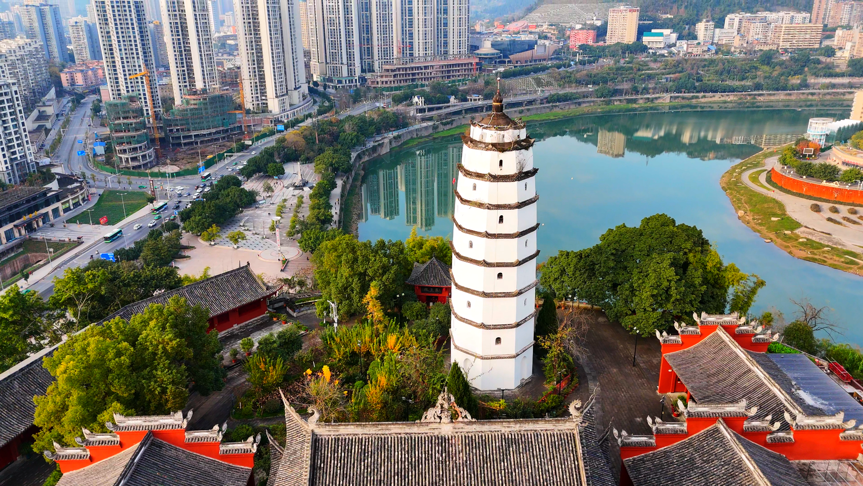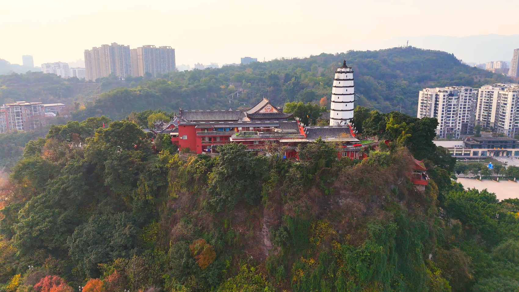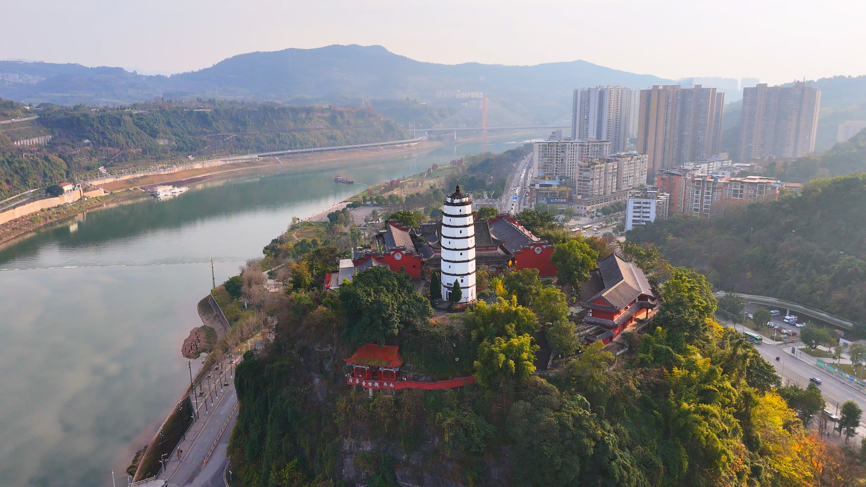 12月28日,在达州市通川区塔沱西岸,一座孤峰卓然而立,其上屹立着一座身白檐黑的古塔——龙爪塔。冬日的州河水清澈明净,暖阳下的龙爪塔更显挺拔。