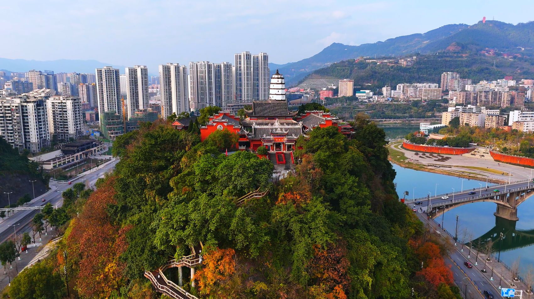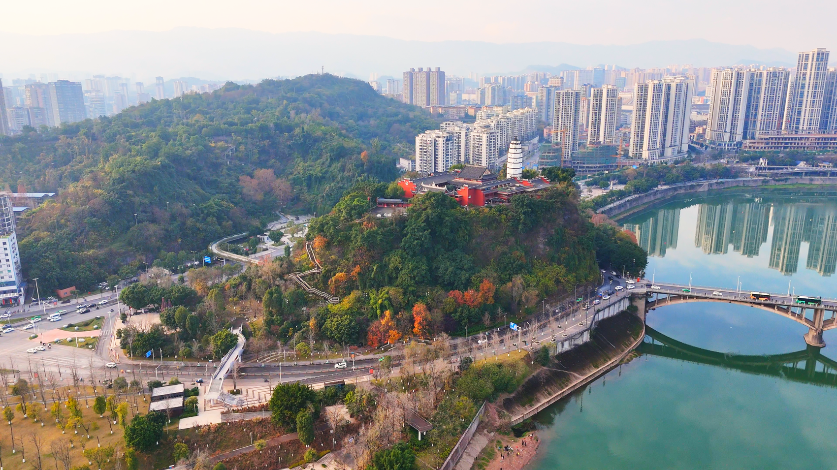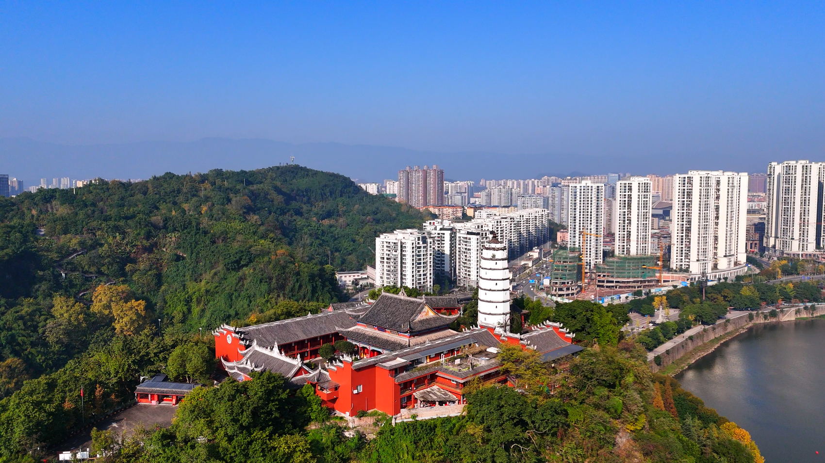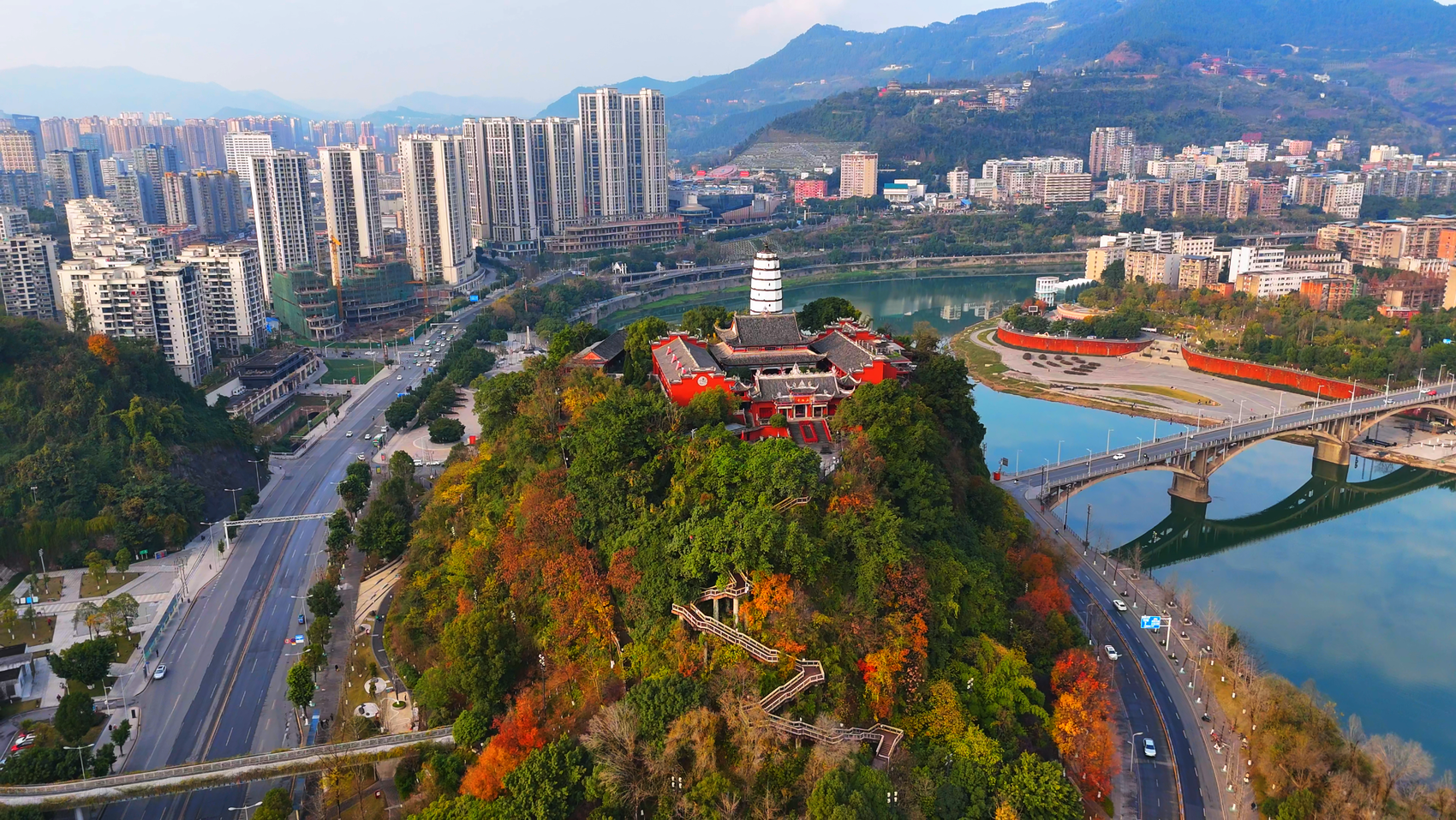 12月28日,在达州市通川区塔沱西岸,一座孤峰卓然而立,其上屹立着一座身白檐黑的古塔——龙爪塔。冬日的州河水清澈明净,暖阳下的龙爪塔更显挺拔。