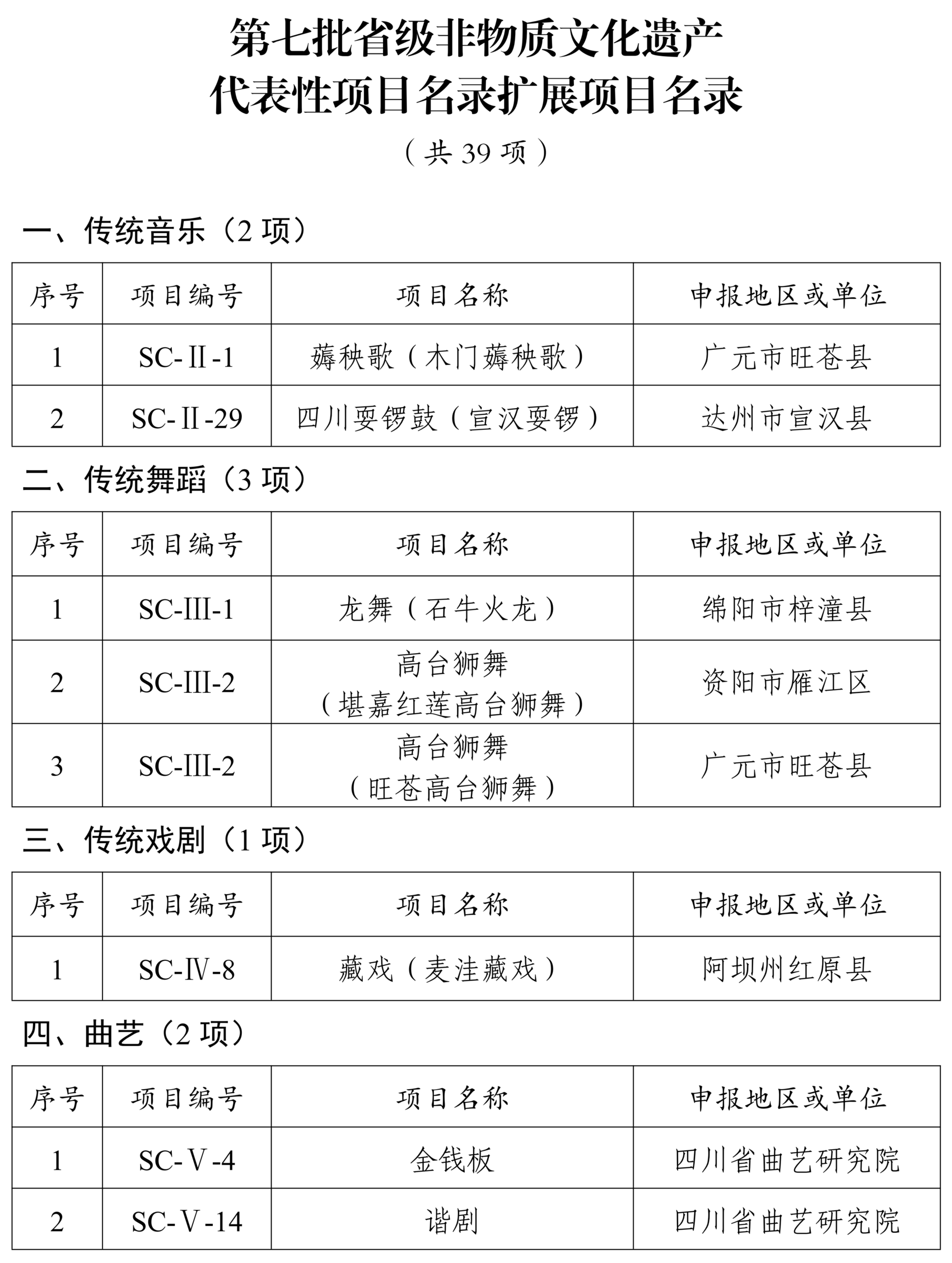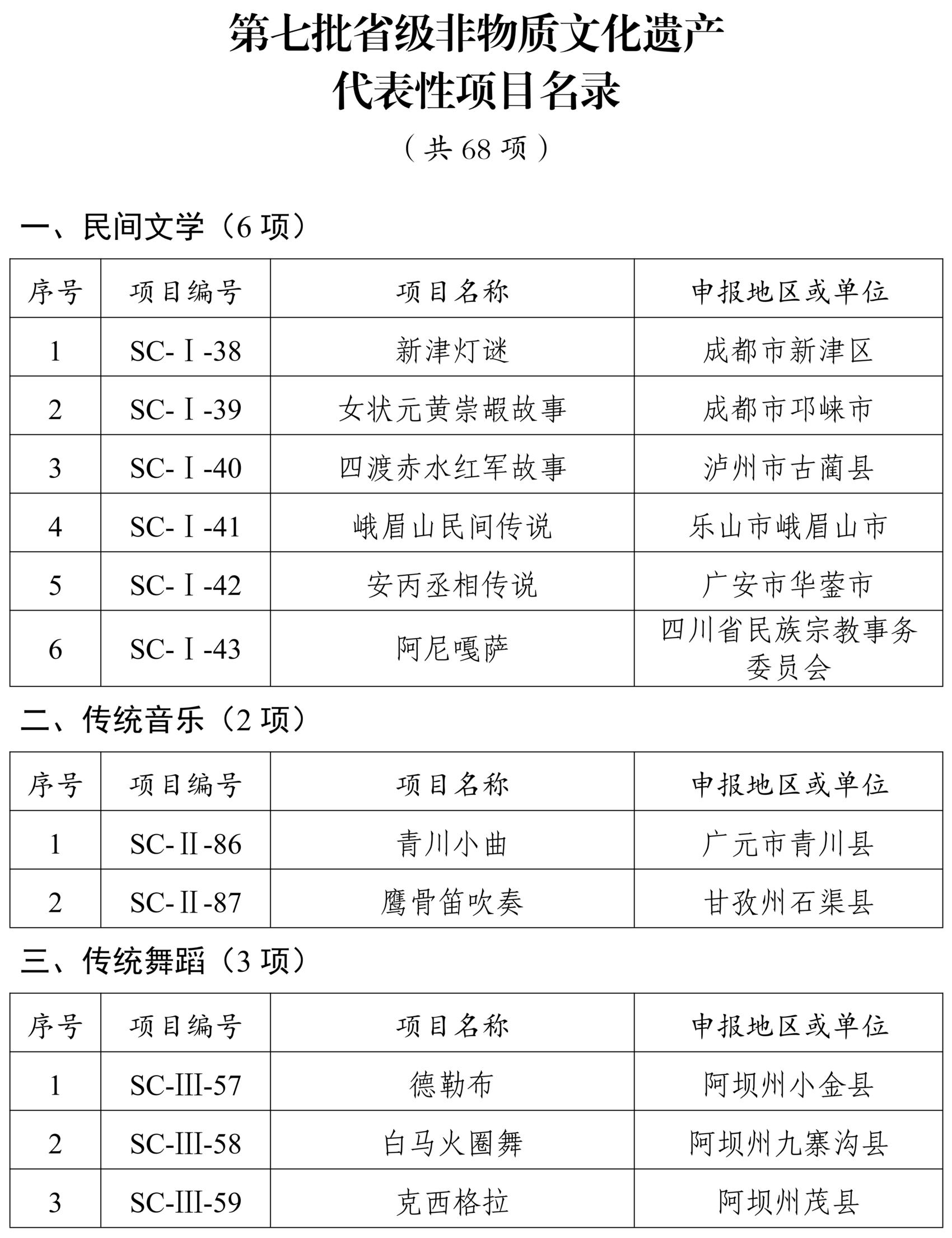 记者从四川省人民政府网站获悉,四川省人民政府近日正式公布了第七批省级非物质文化遗产代表性项目名录。