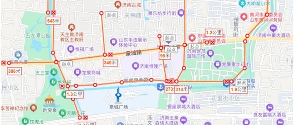 一、禁行路段。少年路、铜元局前街(周公祠街至启盛街)、启盛街、明湖北路(启盛街至历黄路)、明湖东路(历黄路至黑虎泉北路)、黑虎泉北路、黑虎泉西路、趵突泉南路(五三桥至泺源大街路段,不含泺源大街路口)、趵突泉北路、大明湖路、共青团路(西门桥至饮虎池街,不含饮虎池街路口)、泉城路(西门桥至县东巷,不含县东巷路口)、省府前街、院前街、天地坛街、县西巷、舜井街、按察司街(大明湖路至苗家巷)。