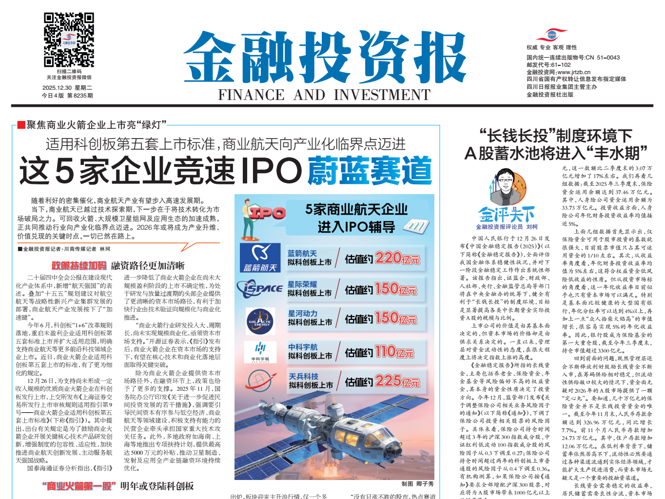 有行业人士指出,随着科创板“1+6”改革举措的持续落地,资本市场将为商业火箭企业提供更有力的支持。《指引》的发布则将显著缩短审核周期,通过上市融资帮助企业突破研发投入瓶颈,加速可重复使用火箭、大推力发动机等关键技术的迭代。
